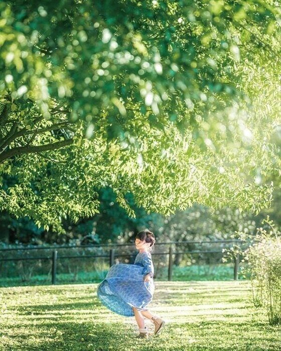 ①光や背景が綺麗な場所に、子どもに立ってもらう。