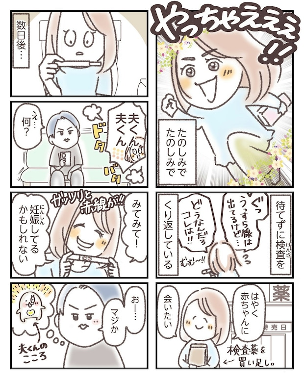 妊娠検査薬で陽性が出てからエコーで赤ちゃんの様子が確認できるまでは、少しタイムラグがあることも。主人公の不安な気持ちと、無事に胎嚢が見えて安心する気持ちがひしひしと伝わってくるエピソードでしたね。