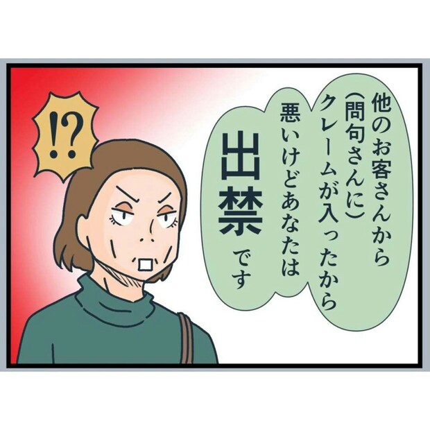 そして、他のお客さんからクレームが入ったため、問句さんは以後出禁であることを告げます。