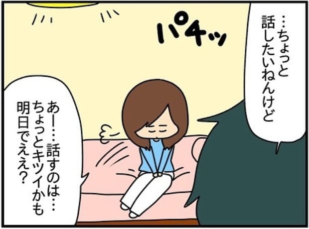 チコちゃんが「明日話そう」と言うも、夫は「今すぐ話さなあかん」と強く伝え、チコちゃんもぎょっとします。