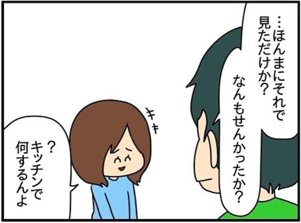大谷さんから届いた動画を見て、チコちゃんの様子がおかしかった理由に気付いた夫。チコちゃんに「明日じゃなく今すぐ話したい」と切り出します。問い詰める夫に対して、チコちゃんは「キッチンで何するんよ?」と笑ってごまかします。