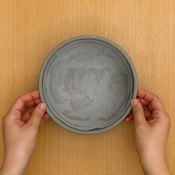 クッキングペーパーはフライパンの大きさに合わせて切っておく。 クッキングペーパーがない時は、ふきんなどを敷いてカップが動かないようにしてください。