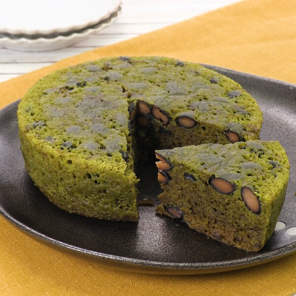 卵不使用でもふわふわ食感♪抹茶の香りと黒豆の甘さがベストマッチします♪今日のおやつにいかがですか?