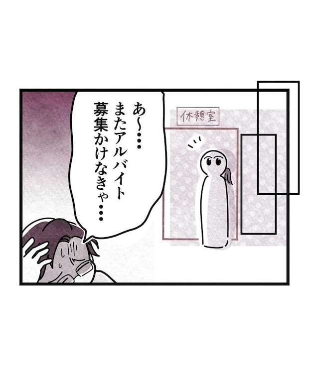 えみさんが休憩室に入ると、スタッフがやめてしまうことに悩んだ店長の姿が目に入ります。
