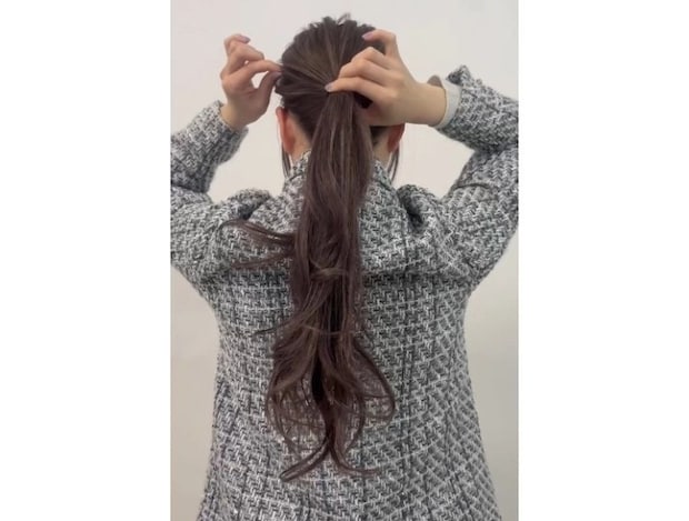 このとき、あまり高い位置に結ぶと、子どもっぽくなってしまうので、耳の位置あたりで結ぶとちょうどいいです♪