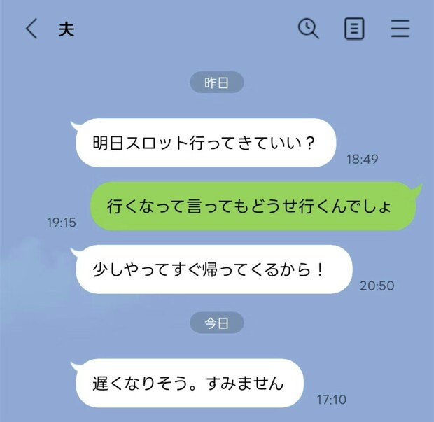 朝イチでスロットへ、帰宅は閉店後。悪びれもしない夫にイラッ