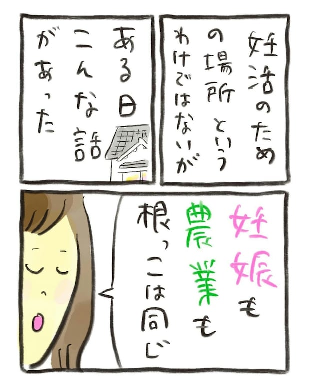 この施設は妊活を目的とはしない場所だったものの、興味が湧いたので行ってみることに。すると、ある日「妊娠と農業」についての話がありました。