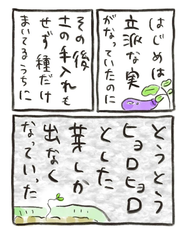 おたんこ助産師さんは、自身の家庭菜園での失敗を思い出していました。そのときは、手入れをしなかった土から、弱々しい芽が生えてきたのでした。