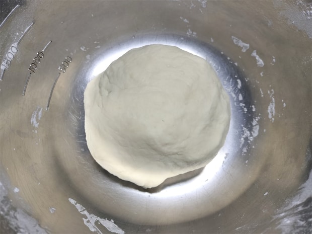 2. 耳たぶより少し硬めになるまでしっかりとこね、ラップをして常温で20~30分寝かせます。