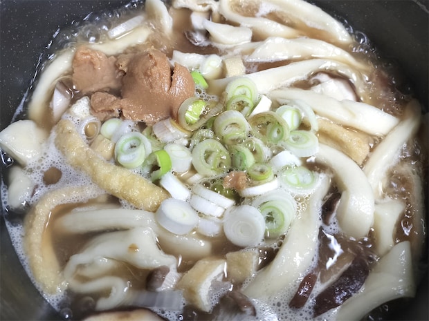 こちらも特徴のひとつ!下茹でせずに煮込むので、とろみのついたつゆになります。麺を切っては入れ、切っては入れして煮込む料理だから「おっきりこみ」という名前がついたとも言われています。