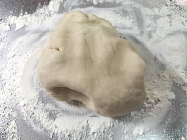 6. 2の生地を打ち粉の上に置きます。
