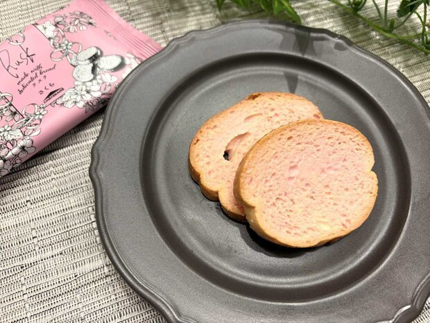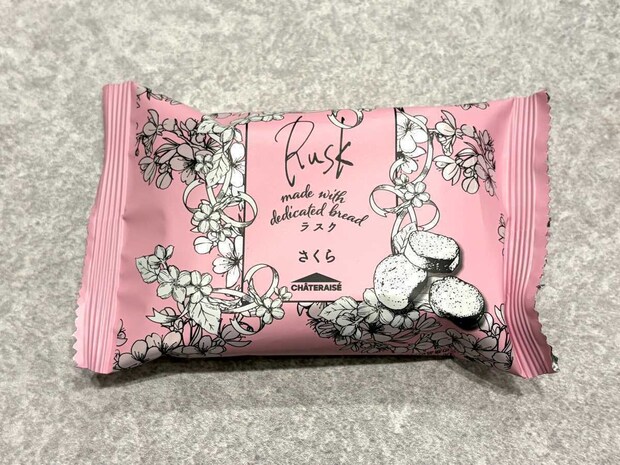 袋の中には可愛らしいピンク色のラスクが入っており、華やかな色合いでテーブルを明るく彩り、春の訪れを感じさせてくれます。