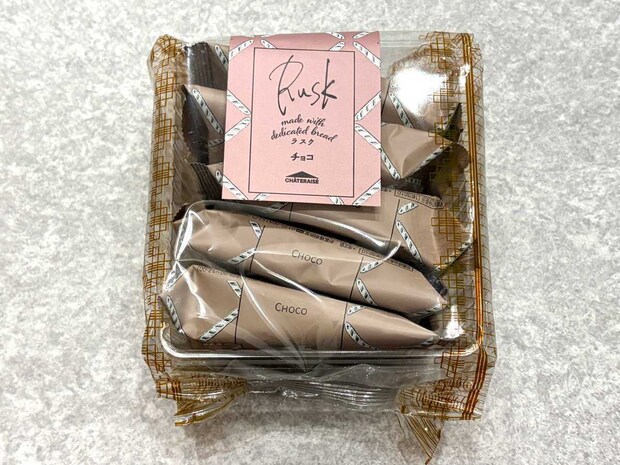 袋から取り出してみるとチョコレートの色が濃く、パッと見ただけでもラスクの奥深くまでチョコが染み込んでいるのがわかります。