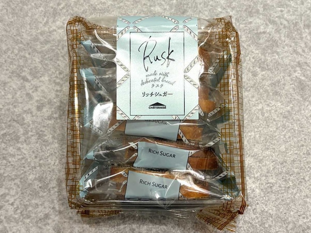 非常に香ばしくザクザクとした食感で、「溶かしバターのリッチシュガーラスク」とは異なる食べごたえを楽しめます。