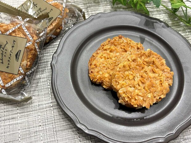 甘くてほろ苦いキャラメルと、アーモンドのザクザクとした食感が特徴の「キャラメルアーモンドラスク」。