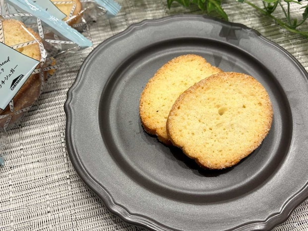 袋を開封すると甘いバターの香りが広がり、サイズはコンパクトながらもしっかりとした厚みを持っています。