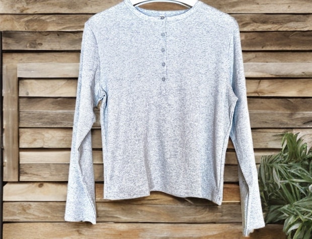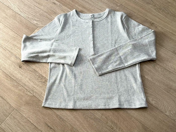 同ブランドの薄手な「リブヘンリーネックT/長袖」と重ね着しても着膨れしません!