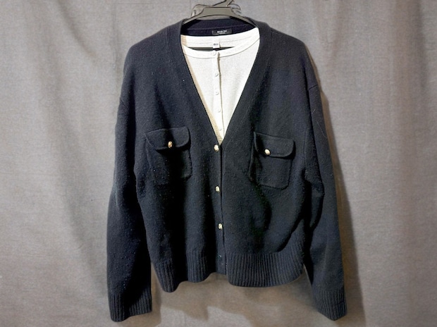 それでも胸やお腹のラインが気になる場合は、長めのスカーフを垂らして縦のラインを作ることで、スリムに見せる錯覚効果が狙えます。また、カーディガンの下に着ても着膨れせず、むしろ高見えさせてくれます。