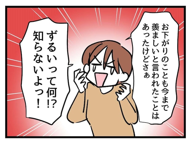 これまでのたまみの行動に理解できないすみれちゃんママたち。特につむぎちゃんママは初めてお下がりのことで人に「ずるい」と言われたことが衝撃だったようです。