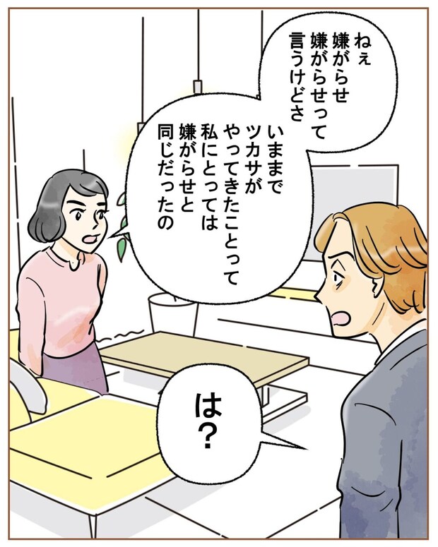 「ねぇ、嫌がらせ嫌がらせって言うけどさ、いままでツカサがやってきたことって、私にとっては嫌がらせと同じだったの」私がそう言うと、「は?」と聞き返すツカサ。
