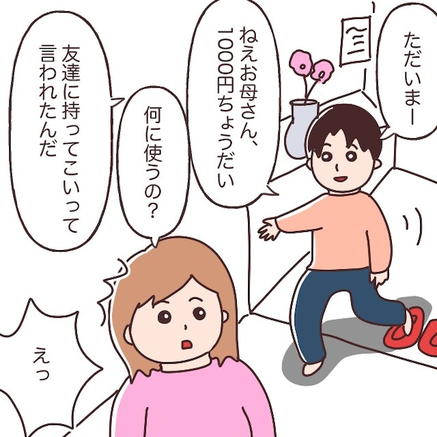 そう言われて「何に使うの?」とお母さんがたずねると、「友達に持ってこいって言われたんだ」と答えるシュン君。お母さんは「えっ」と驚きました。