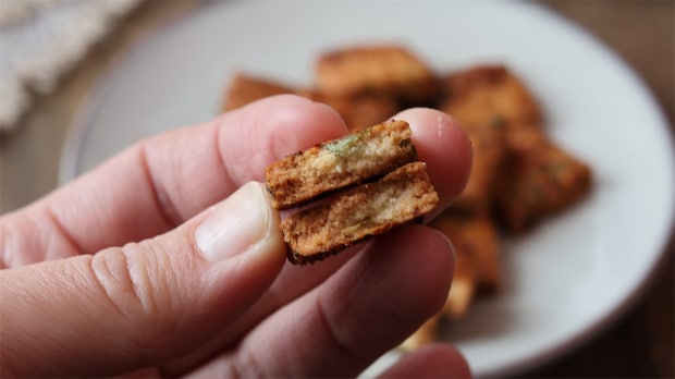 大きすぎたり分厚すぎると火が通りにくく、ザクっと感が半減してしまうのでご注意くださいね。焼きたては少し軟らかいですが、冷めるとしっかりした硬さになります。