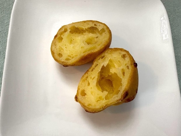 断面は大きな空洞がありつつも、生地自体は非常に密度が濃く、タピオカ粉特有の驚異的なモチモチ感を楽しめます。