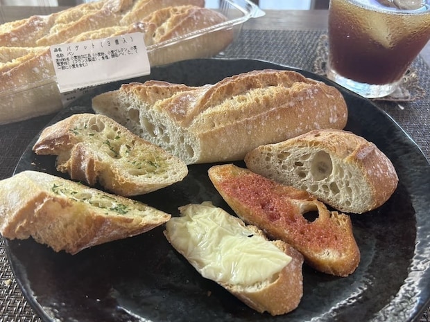 3本あるので、1本はそのままディナーのお供に、もう1本はスライスしてフレンチトーストに、残りはガーリックバターをたっぷり塗ってガーリックトーストになど、アレンジの幅は無限大。
