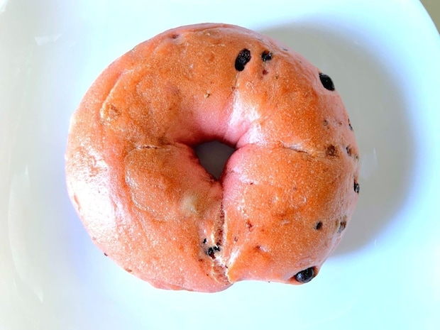 可愛い見た目のいちごベーグルには、チョコチップが練り込まれています。