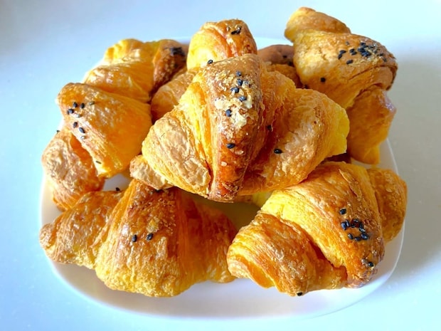 加熱することで重なり合ったバターの層が開き、断面はハラハラと解けるような食感に。