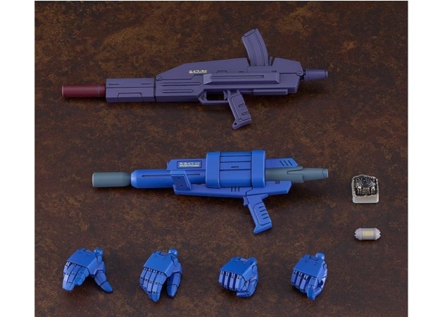 「ハンディソリッドシューター」「DTアサルトライフル」「機雷」「破損腕」及び、同スケールの「キリコ・キュービィー」フィギュア(表情2種)付属。
