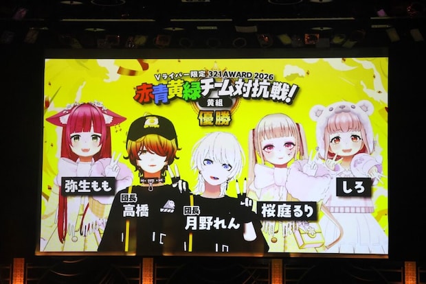 期間中のチーム総獲得ポイントで競うV色別対抗戦では、団長の「高橋」と「月野れん」が率いる黄組が優勝。高橋は「言葉にできないほど嬉しい」と感動をにじませ、「普段できない経験ができたこと、配信者同士でつながりチームで戦えたことが何より嬉しい」と語った。また、初参戦の月野れんは「勝てるかどうか不安になる瞬間もあったけど、優勝できて本当に嬉しい。みんなで掴んだ勝利」と感極まっている様子を見せた。なお、優勝した黄組はチーム全員で川崎駅の大型ビジョンに掲載される予定だ。