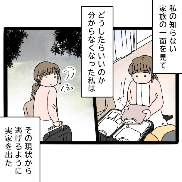 知らなかった、気づかなかった家族の嫌な一面を見てショックでしたが、どうしたらいいのか今はまだわからず、私はその現状から逃げるように帰宅しました。