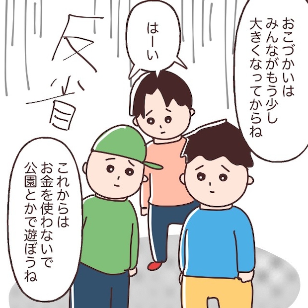そして、「おこづかいはみんながもう少し大きくなってからね。これからはお金を使わないで、公園とかで遊ぼうね」それぞれのお母さんにそう言われ、3人は「はーい」と反省しながら答えました。