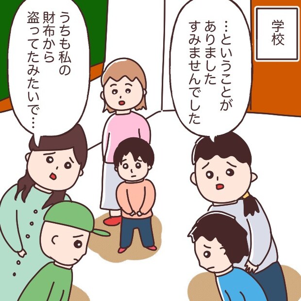 「・・ということがありました。すみませんでした」そう言って謝るレン君とユリカさん。すると「うちも私の財布から盗ってたみたいで・・」とカイト君のお母さんも言い、シュン君とお母さんは、お互い謝り合う姿を見ていたのでした。