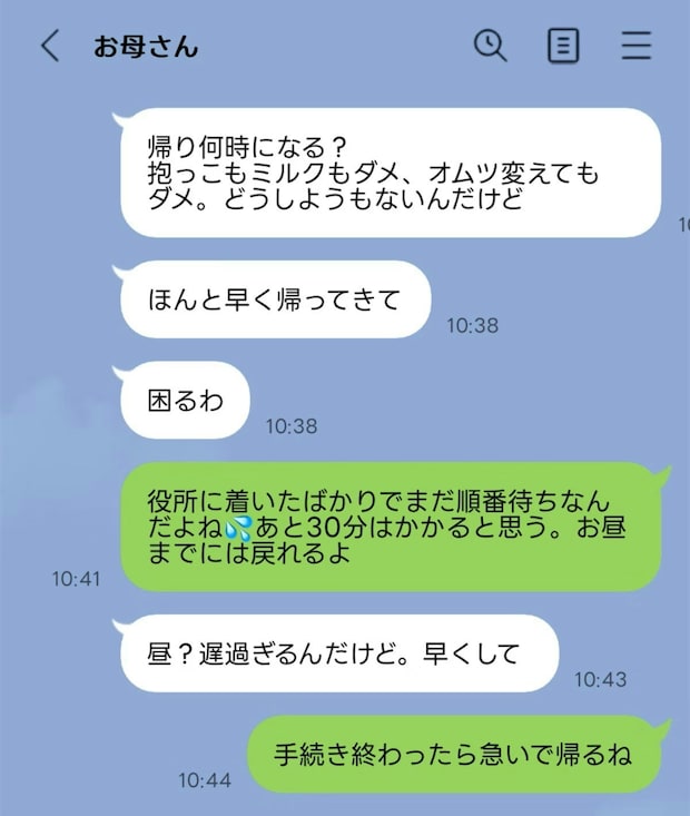 一回市役所の手続きのために二時間預けただけでずっとLINEが来て、慌てて帰ったら怒鳴なれました…)出典: