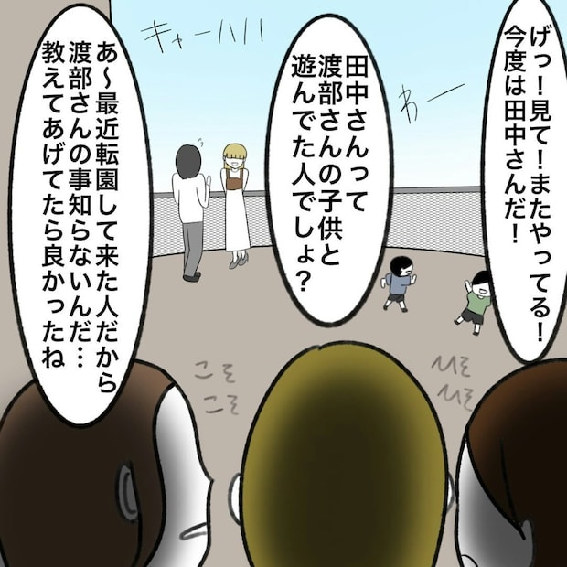 ゆめちゃんママとかけるくんママに助けてもらい、渡部さんのことについてお互いに話すことができました。