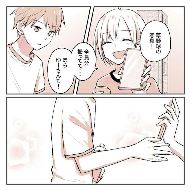 りんさんが草野球のときに撮った写真を見せると、ゆーさんはしばらくスマホの画面を見つめていました。少し様子がおかしいと思ったりんさん、しかし気づくとゆーさんはいつもの態度に戻っています。