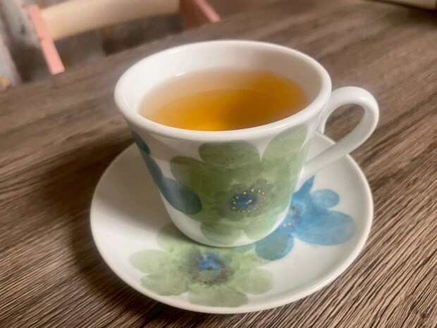 こちらはカモミールやスペアミントが入ったカフェインフリーのハーブティーです。 頭の中で呪文のように(いまリラックスしてるぞ〜)と唱えながら飲むのがポイントです。