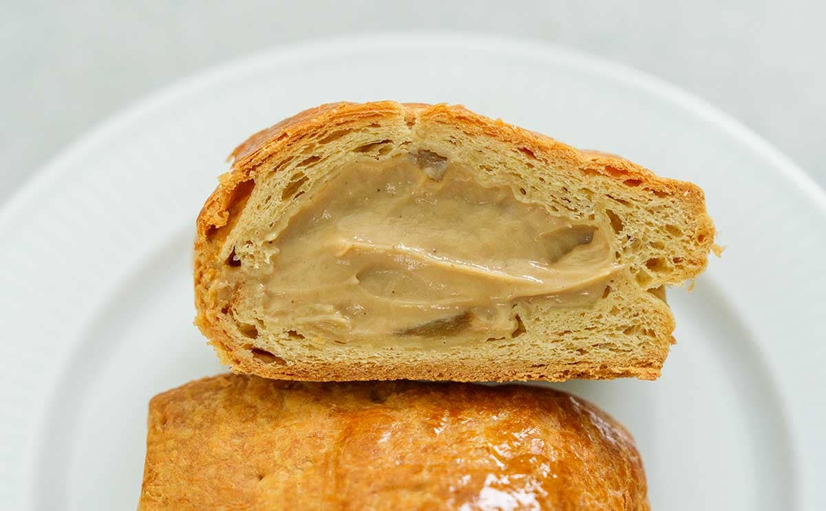 次は断面をチェック。パイ生地の中には紅茶クリームがみっちりと詰まっています。わかりづらいですが、りんごも見えていますね。