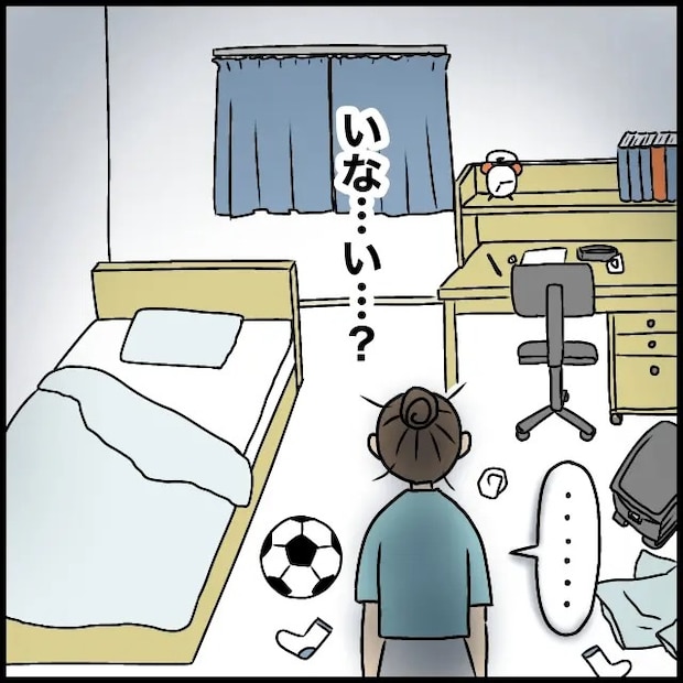 部屋に入ってみるとあらびっくり。眠っているはずの息子の姿が、どこにも見当たらないのです。かくれんぼでもしているのかと思い、布団の中や机の下、クローゼットの奥まで探してみましたが、見つかる気配はありません。え・・・どこに行ったの?寝るって言ってたよね?