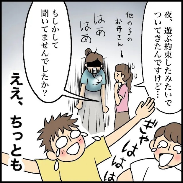 「夜、遊ぶ約束をしてたみたいでついてきたんですけど・・・もしかして聞いてませんでしたか?」他の子のお母さんにそう言われ、私はぜえぜえと息を切らしながら「ええ、ちっとも」と答えました。「どれだけ心配して探し回ったと思っているの!」と息子を叱ると、「え?言ったじゃん」とケロリ。・・・いや、絶対聞いてないから!というか、そもそもこんな時間に遊びに行くこと自体ダメだから!小学2年生の息子からは、まだまだ目も手も離せそうにありません。