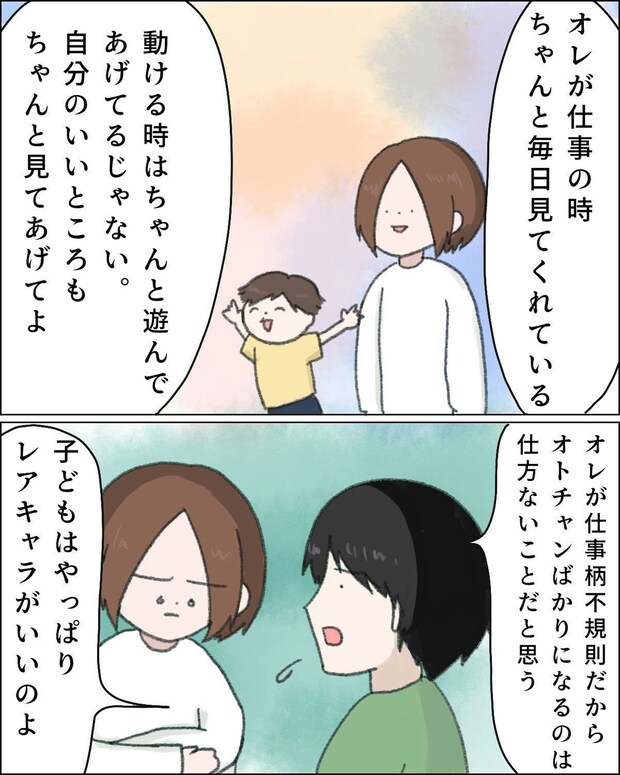ねむりひつじさんの夫の言葉が温かいですね。本来子どもが健康に安全に毎日を過ごせるようにサポートしているだけで大仕事なのです。そんな日々を当たり前に過ごせていることをちゃんと自分の中で褒めることは大切ですよね。