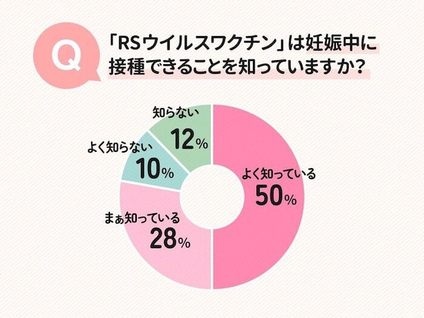 アンケート結果では、半数の妊婦さんがRSウイルスワクチンを妊娠中に打てることを「よく知っている」と回答。リアルな声も紹介します。