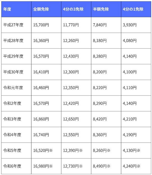 令和7年度(2025年度)に追納した場合は以下の保険料額になります。