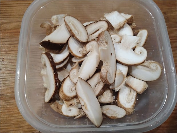 4. しいたけ、しめじは石づきを取って食べやすい大きさに切る。