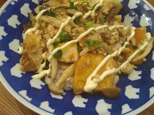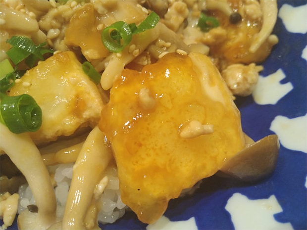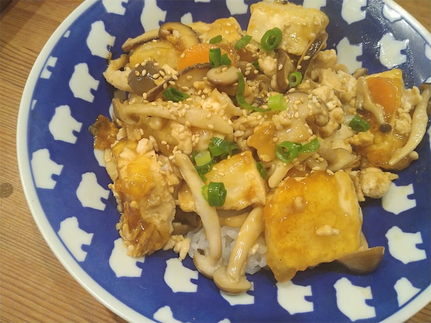 9. 丼ぶりにご飯をよそって、8の具材をのせる。お好みで白ゴマをかけたら完成。