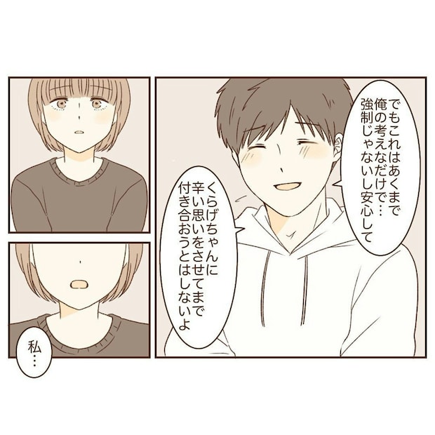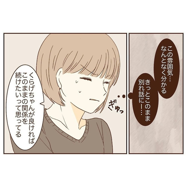 くらげさんは、みなとくんの様子を見て、別れ話になるのではないかと覚悟していました。しかし、みなとくんは「これからも関係を続けたい」という前向きな気持ちを伝えてくれました。
