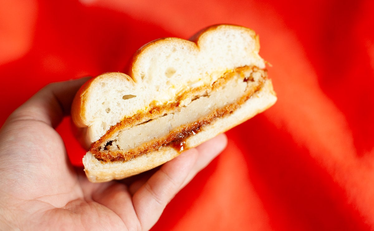 パン生地はプレーンな味わいですが、ふわっとやわらかく、パサパサ感がないのはうれしいポイントです。パンだけでも十分なくらい食べごたえがありますね。