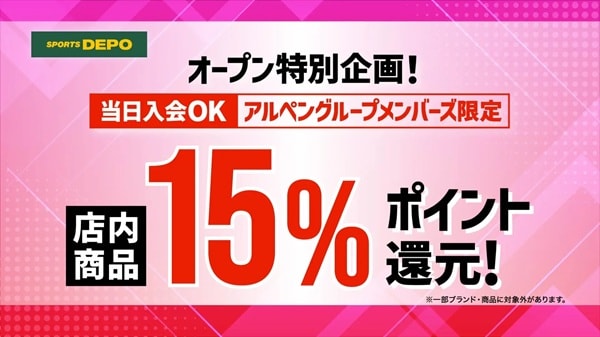 また、3月27日(金)~4月6日(月)の期間、リニューアルオープンセールを実施中だ。店内商品を購入すると、アルペンポイントを15%還元。アルペングループメンバーズは、当日入会可能・年会費無料だ。なお、一部ブランド・商品に対象外がある。